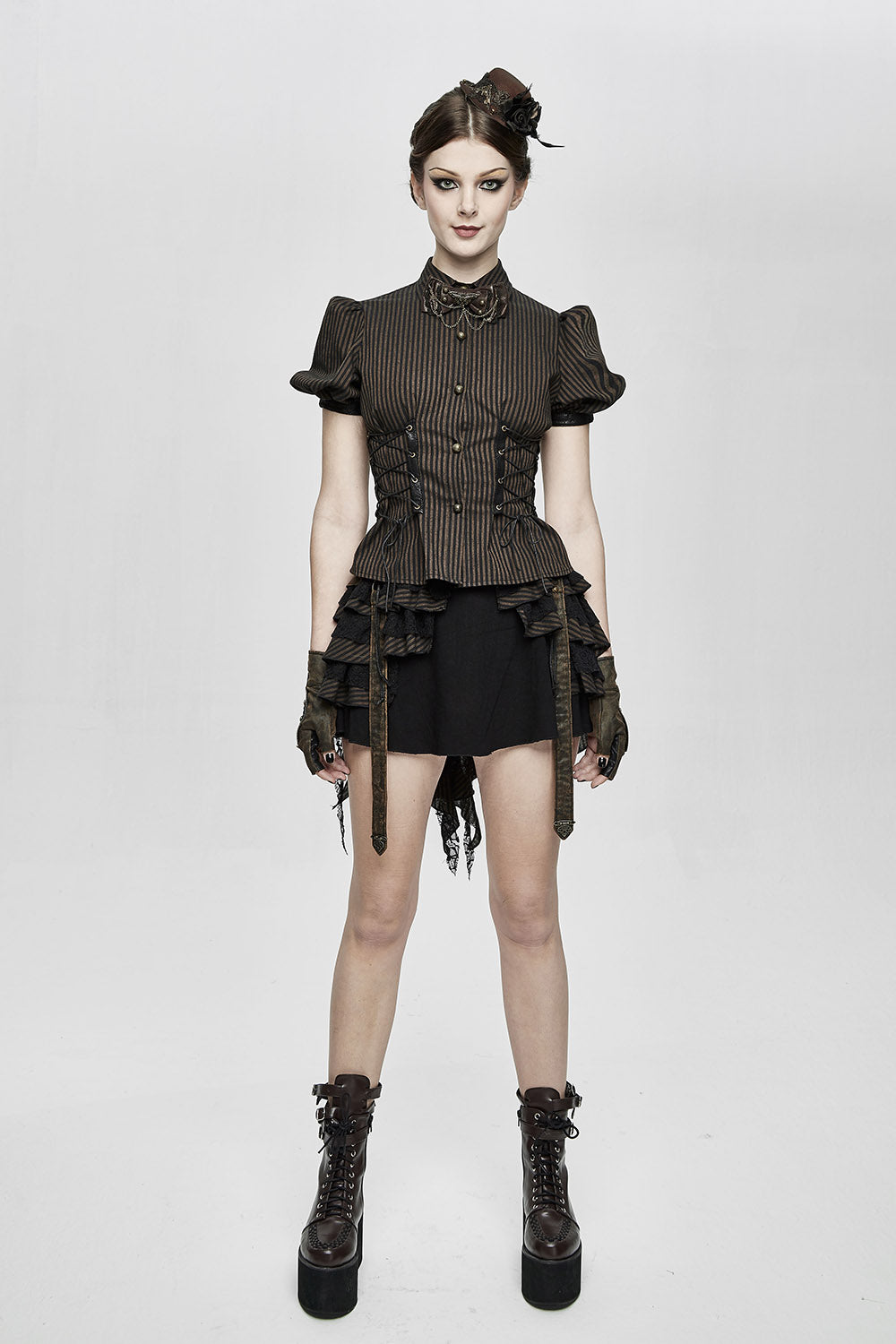 • Ornate, Antiqued Buttons & Eyelets.