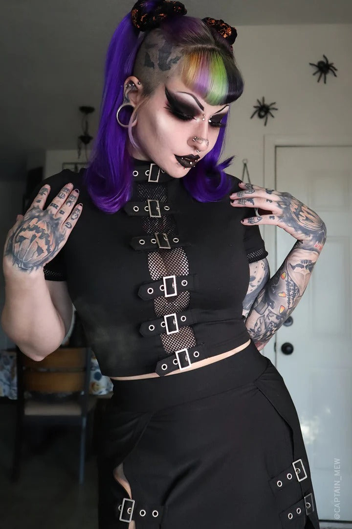 A new staple piece in my wardrobe! Very stretchy and the perfect amount of sexy if you unbuckle it. Im about 130 with 32G boobs and a S fit like a glove