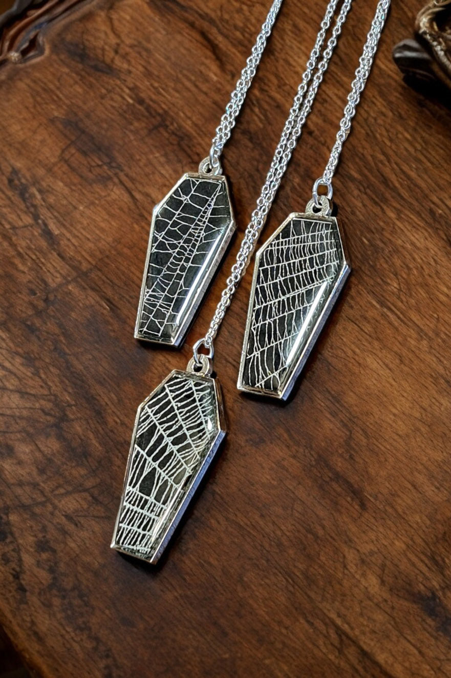 *This piece symbolizes our love of nature and connection to the darker things in the world. Each necklace features a real ethically-sourced spiderweb hand-set into a bezel. No animals are harmed in the making. Each cobweb pattern will be unique, and is hand-selected to ensure quality.