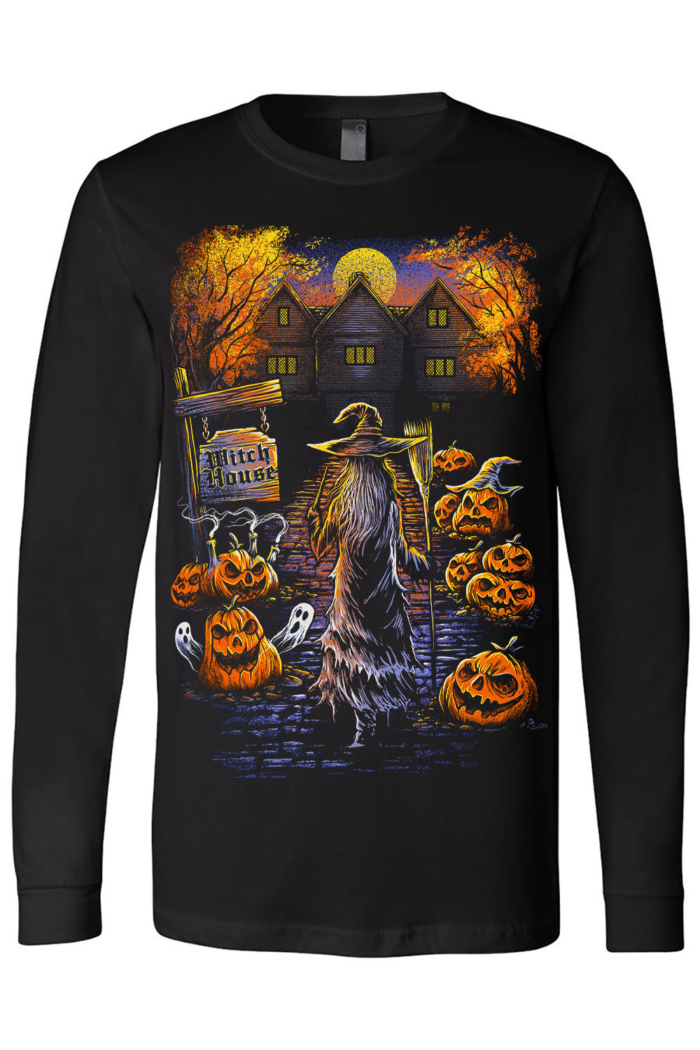 As a spooky & horror fan, I really live and appreciate this store. So far I got the ghost lovers with ghost sleeves sweatshirt, the women's racerback spooky season tank, also in salem witch house, and the orange haunted house. I also got Salem witch house in a long sleeve. These clothes are of decent quality, & I love the designs. They make my spooky heart happy. I find it funny that as an adult I wear way cooler clothes than when I was a teenager. I guess cause I didn't have my own money, and my clothes didn't exist then. I'm over here thinking about the werewolf sweatshirt with the moon