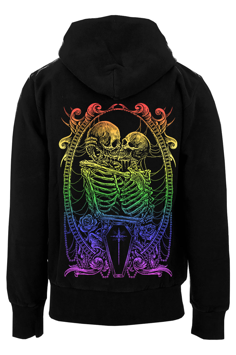 The hoodie is very comfortable and the design is fantastic and stylish. It makes my black heart bleed.