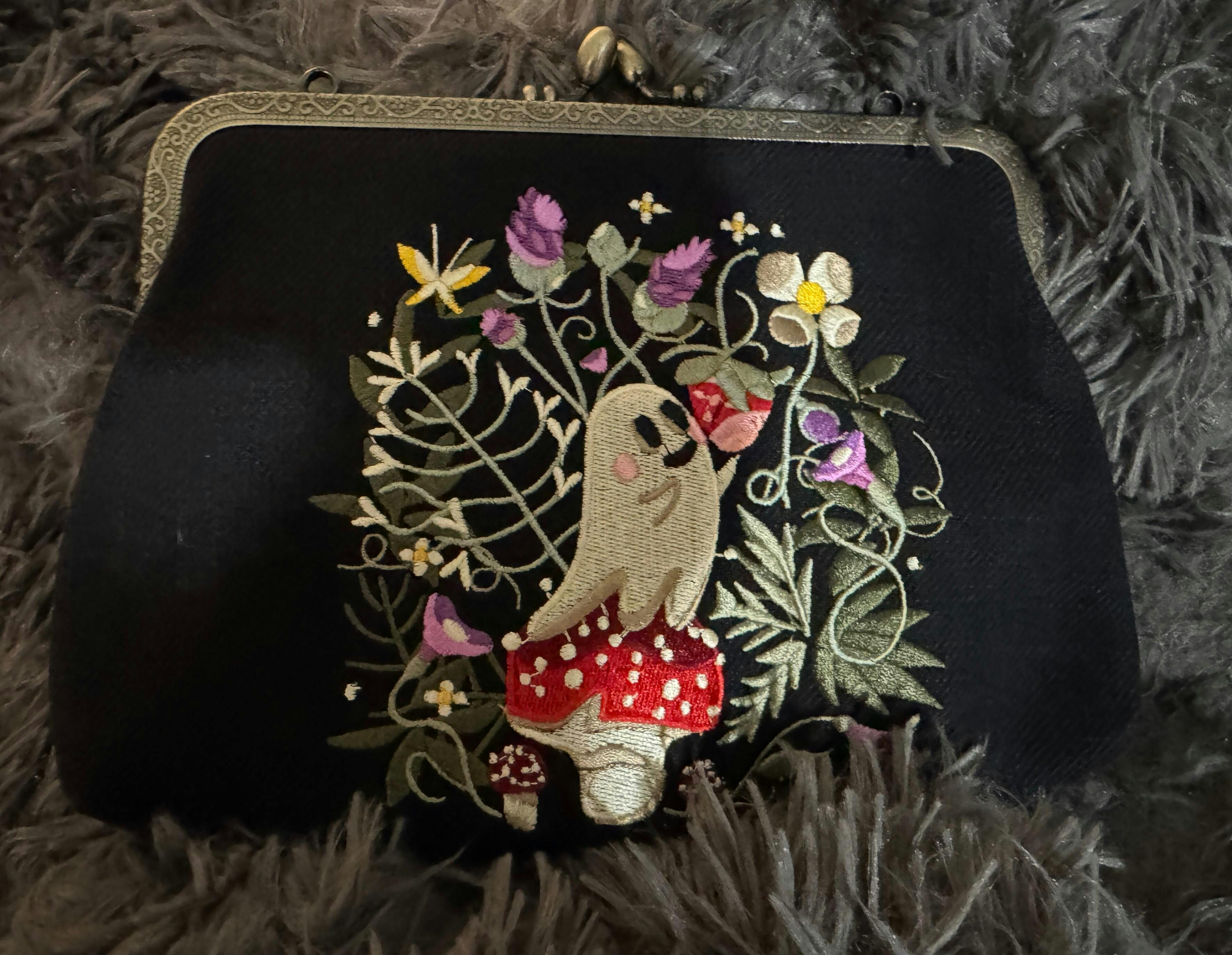 - Embroidered Ghost, Mushroom, & Forest Flowers.