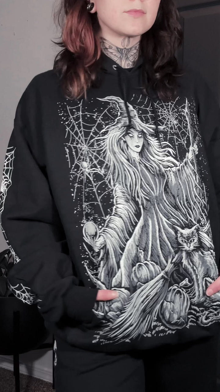 I love this pullover to bits...the witch is stunning. I didn;t realize she's holding a crystal ball until I got it which I really love. I can't wait until October... the true season of the witch! I for one will be wearing it all year roud regardless.