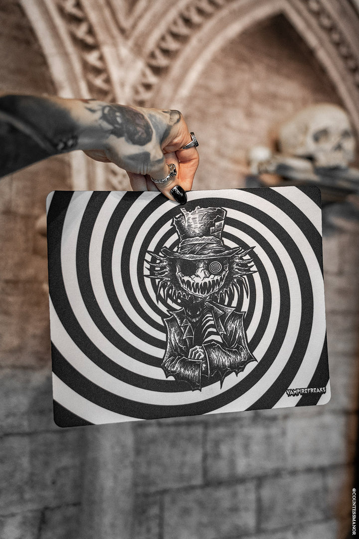 Usually I have a tough time finding mouse pads that are big enough to actually be used and also spooky (so i typically end up just ordering plain black ones). So I was over the moon when I found this big mad hatter one and I was even happier when it arrived. The material is soft to the touch, and my mouse slides easily along it. I'm very happy with the large size.