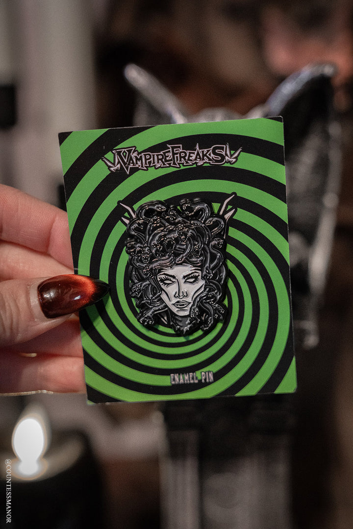 This pin is so detailed and came in good condition. The quality is AMAZING!!! I love that each of the vampirefreaks pins come with a soft silicone backing so that you can put it on any bag or jacket without being poked!!