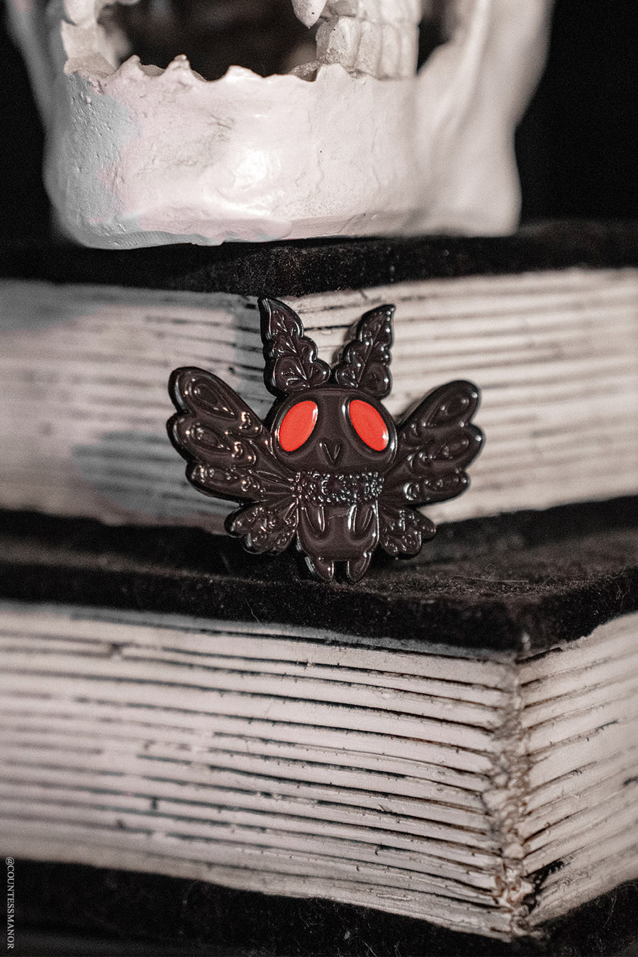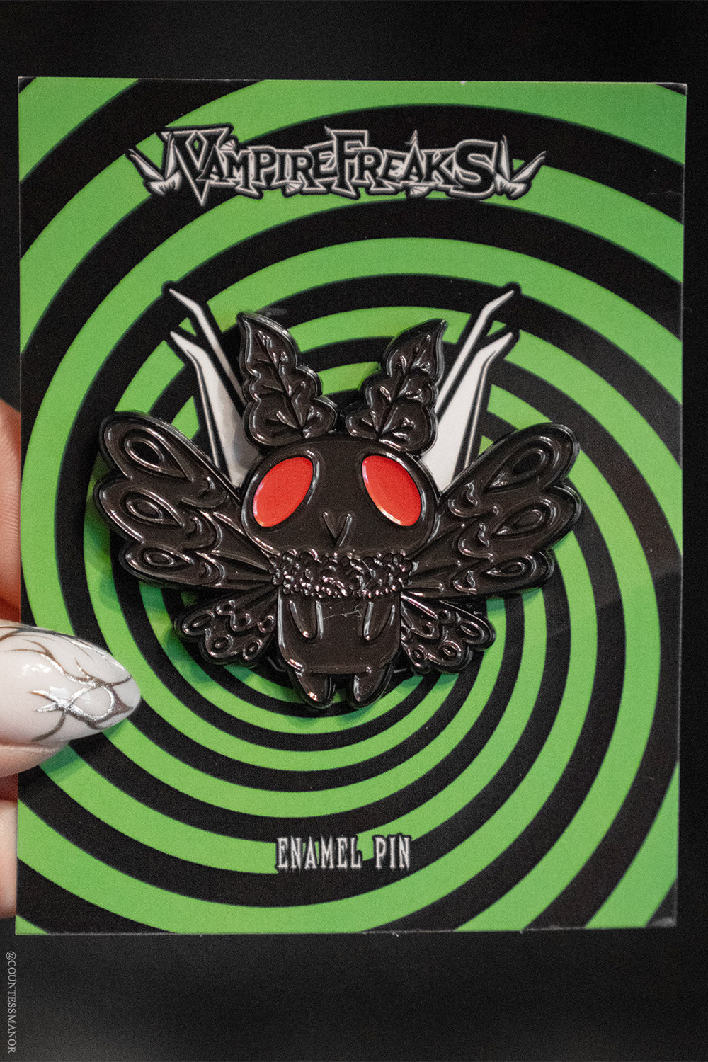 This pin has great details and the color on the eyes pops so well. The quality of this pin is AMAZING I’m so glad I got a mothman pin from vampirefreaks!!