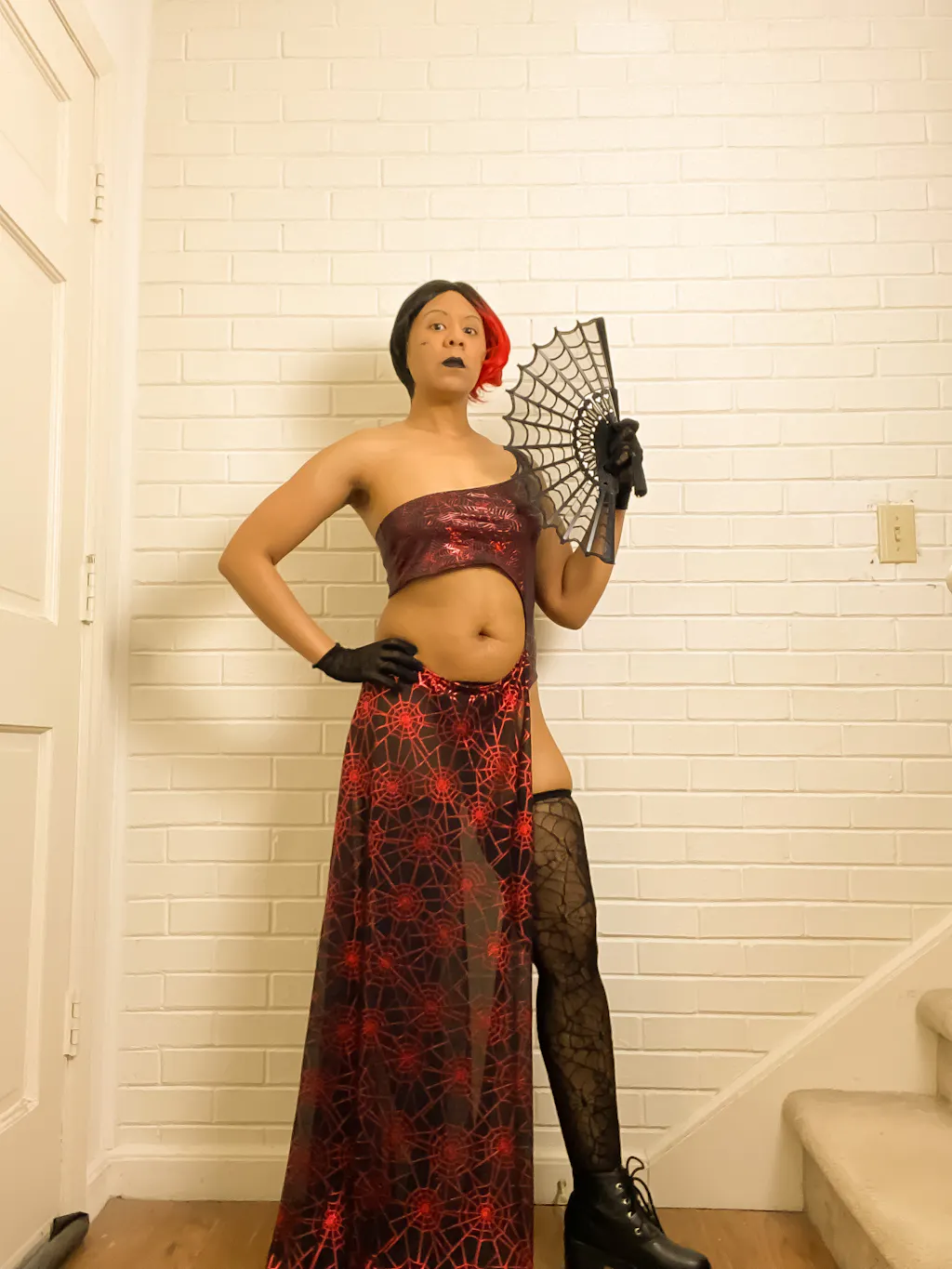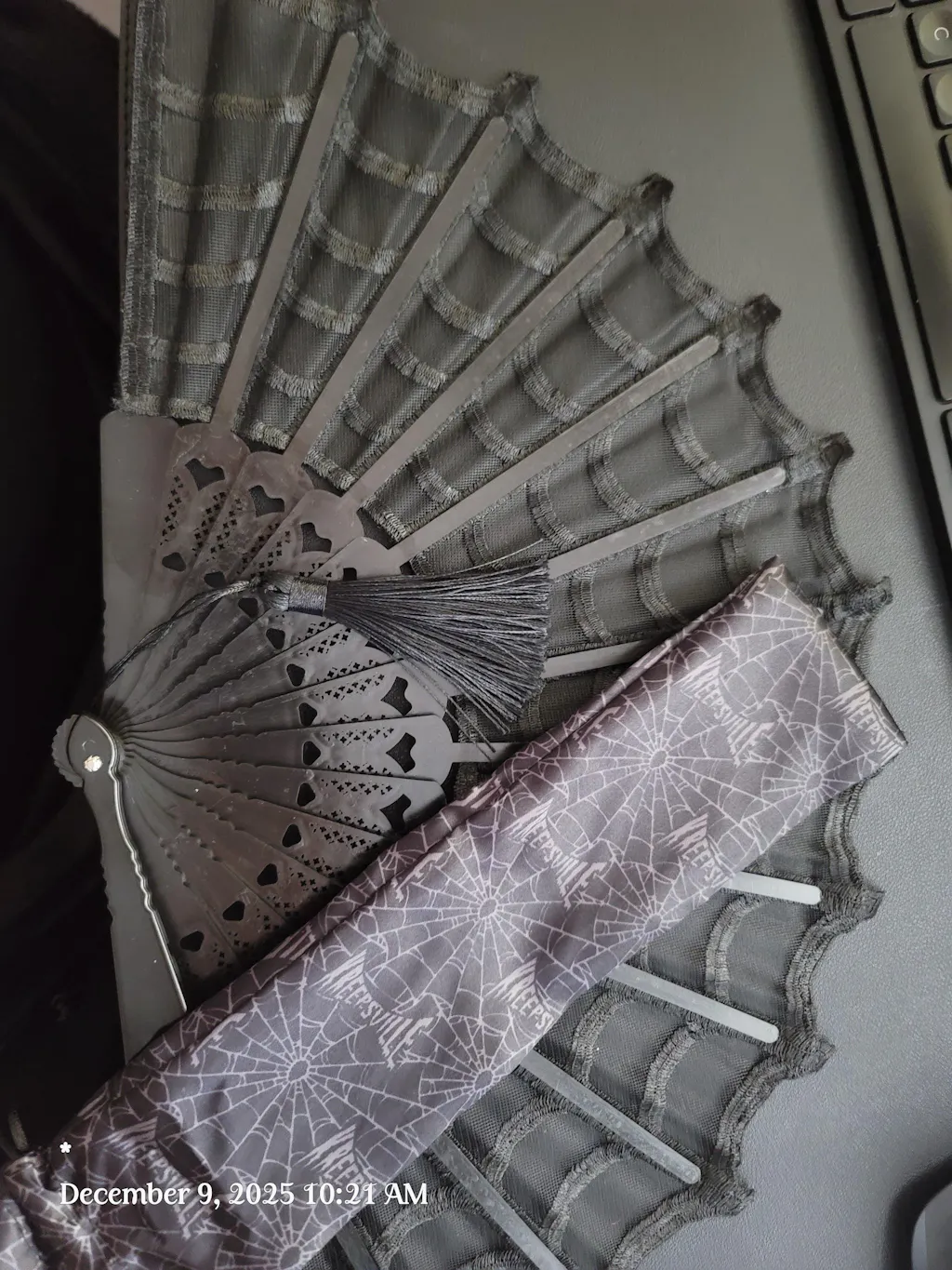 Bleiben Sie cool wie ein Kadaver mit diesem gruseligen Spinnennetz-Fächer! Dieser Gothic-Ventilator ist zusammenklappbar, sodass Sie ihn problemlos in Ihrer Handtasche transportieren können. Er eignet sich perfekt für Picknicks auf dem Friedhof, Kuriositätenmärkte und andere Ausflüge. Beim Entfalten kommt ein Spinnennetz-Design zum Vorschein, das mit einem Spitzenüberzug und gewellten Rändern verziert ist.