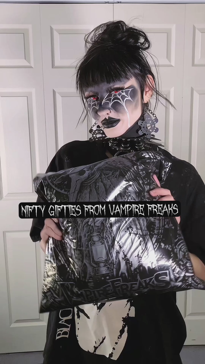 Products listed on our site are currently in stock. Most orders take 1-4 business days for packing and processing at the VampireFreaks warehouse. You can also upgrade to 'priority processing' during checkout to get your order shipped out within 1 business day. Delivery drivers pick up our orders every business day. Please allow extra processing time around holidays.