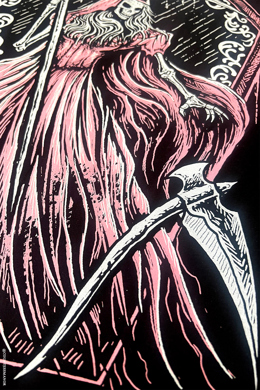 I've never seen a lady grim reaper sweater before! I'm so glad I got it. It's very comfy and the female reaper is sooooo cool. Love the colors too! Kinda adds to the dark humor of it all.