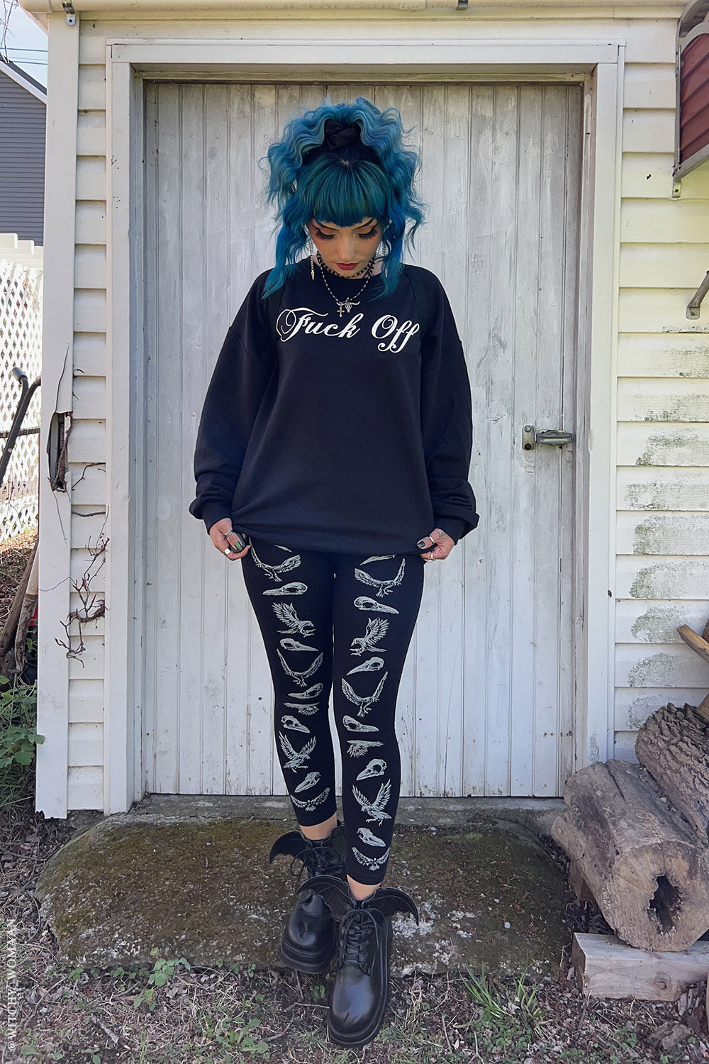 I got 3 pairs of vampirefreaks leggings and these are my favorite. I love love love the raven skulls, theyre so cute! I love this kind of look. Please release more stuff like this ASAP! I'll buy everything lol