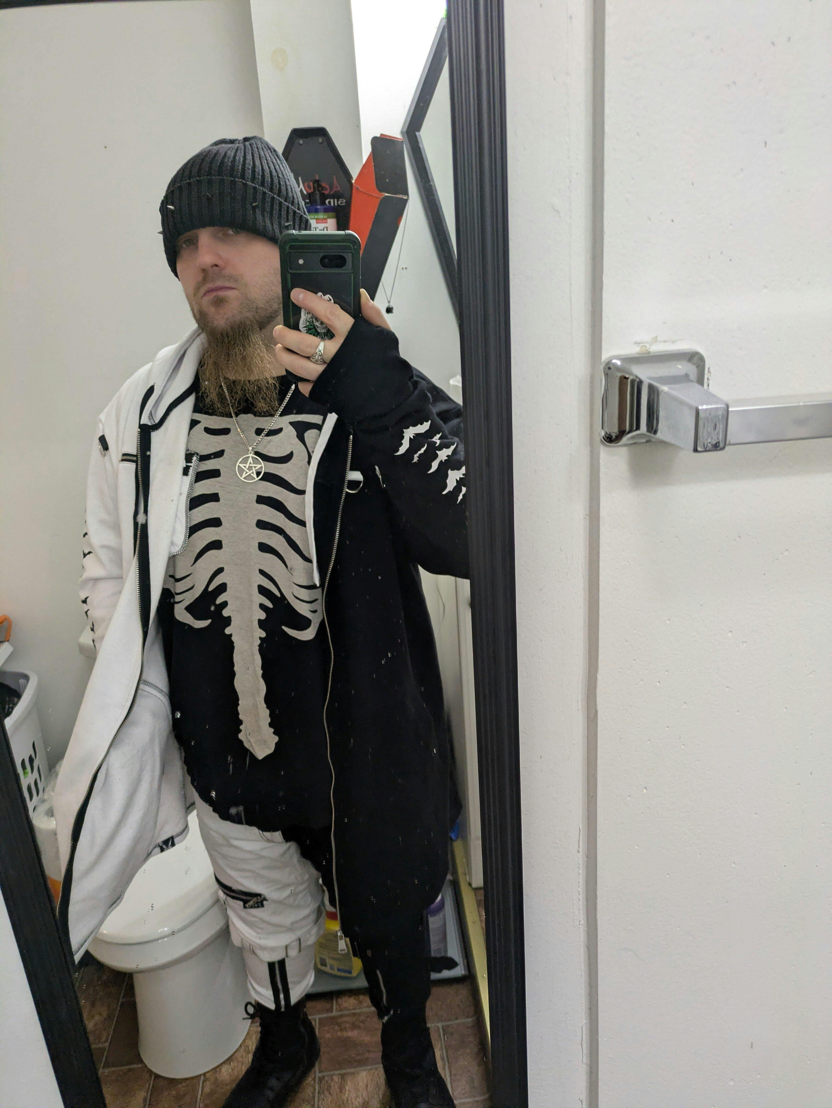 Live you best afterlife in these split leg pants—half black, half ghost white! Possessed with metal hardware, these punk pants feature detachable bondage straps, adjustable buckles on the knees, and accent zippers. Tote your evil essentials in the front and back pockets—zip up the pant legs for a change in fit... whatever your dark heart desires!