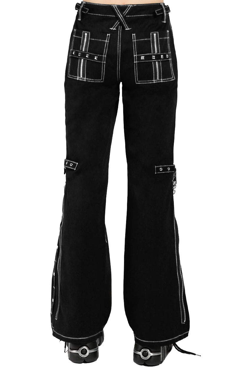 Grunge out in these Tumbler girls Tripp pants, black with bone-white contrast stitching! The night is yours in the baddie bondage straps, silver chains, and pyramid studs. Customize your afterlife with the adjustable pant legs—zip 'em up or down for a change in fit!