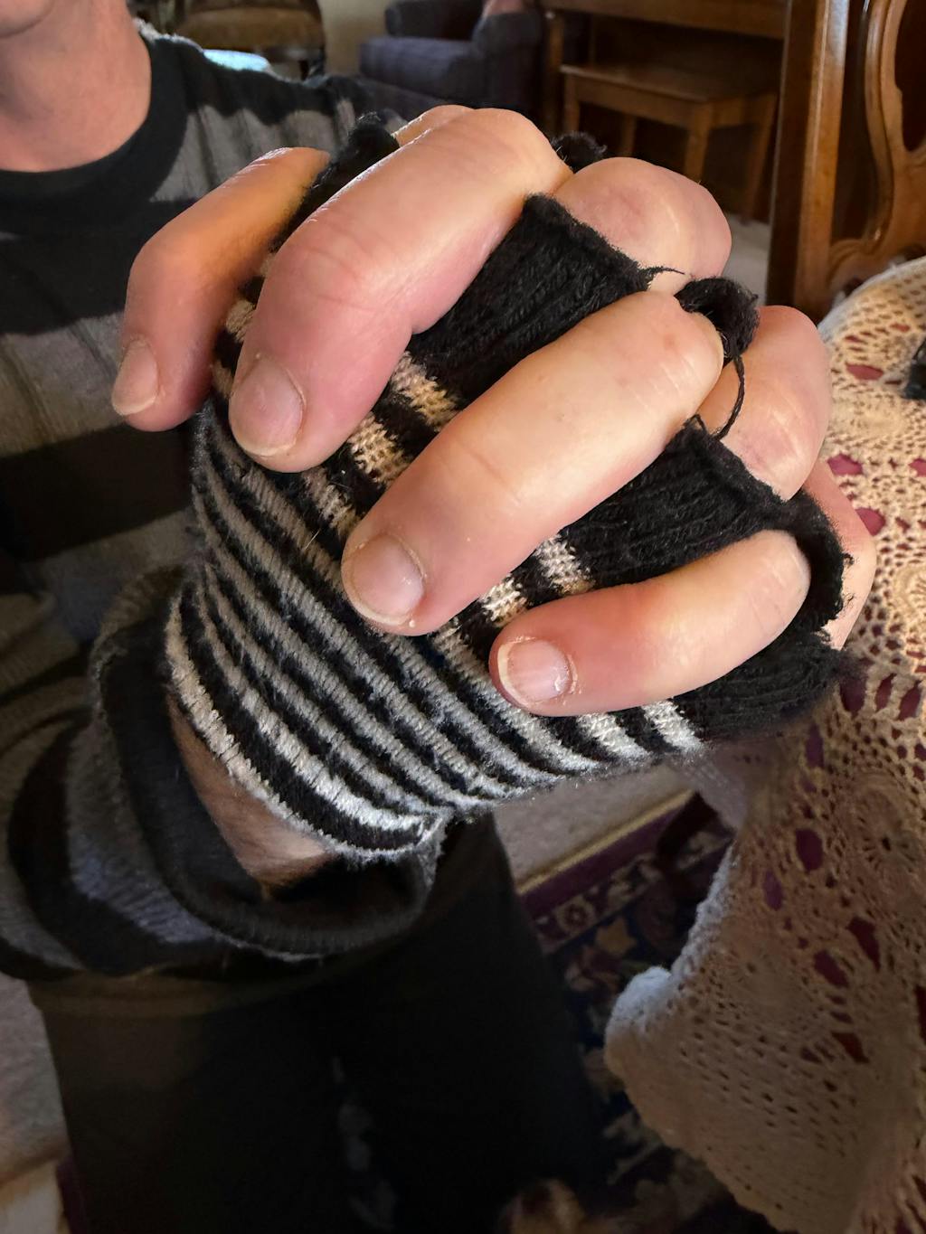 • Striped Gloves.