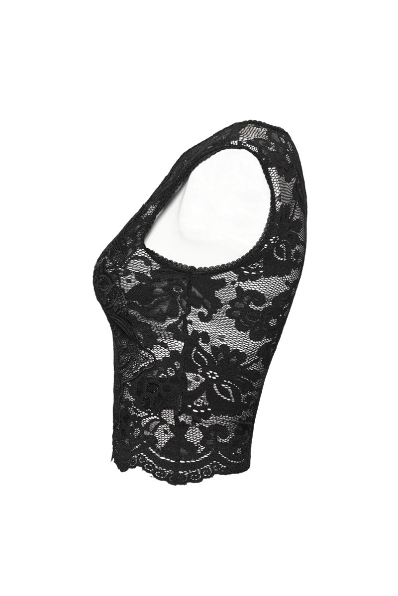 Santa Muerte Gothic Cross Lace Crop Top