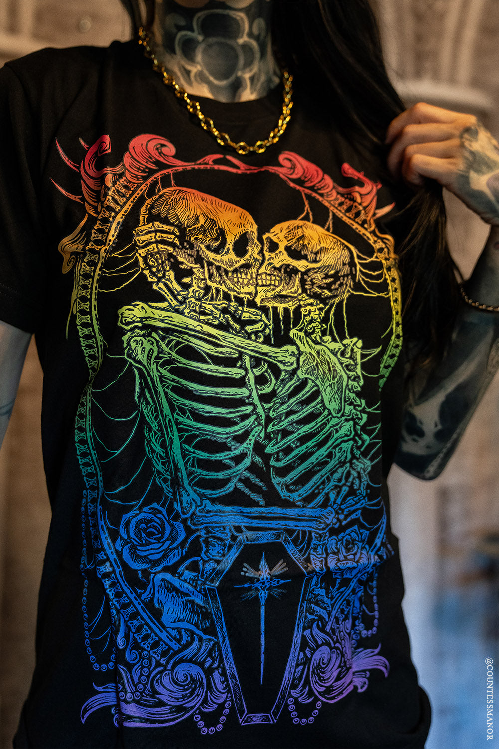 If the Ghostly Tea Time shirt made me want to purchase from here, then this Pride shirt made me want to find more items to get the deal on it. The men's large fits me comfortably and I love the colors and fabric. Maybe it's me, but the ombre rainbow gives me an almost holographic vibe.