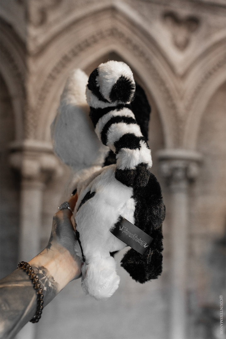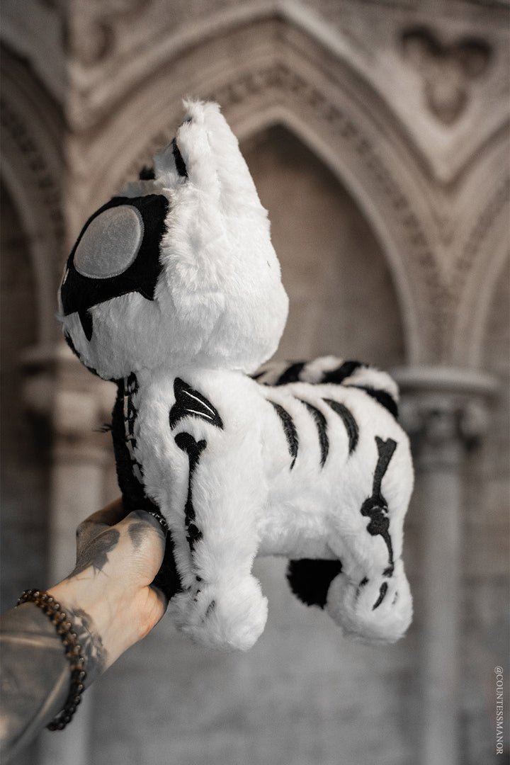I already wanted the regular skeleton kitty plush by VF, but then I saw the split and fell in love. Soooo I ordered both. lol AMAZING quality. So many details and so very soft and creepily adorable. The embroidery is well done, the plush is firm enough to stand on its own, but still soft enough to enjoy holding. The split design is executed wonderfully and everything is lined up. Even the tail rings are opposite from how the original ones were done! Thank you for this amazing plush!