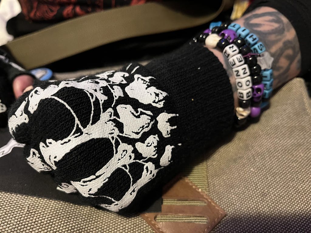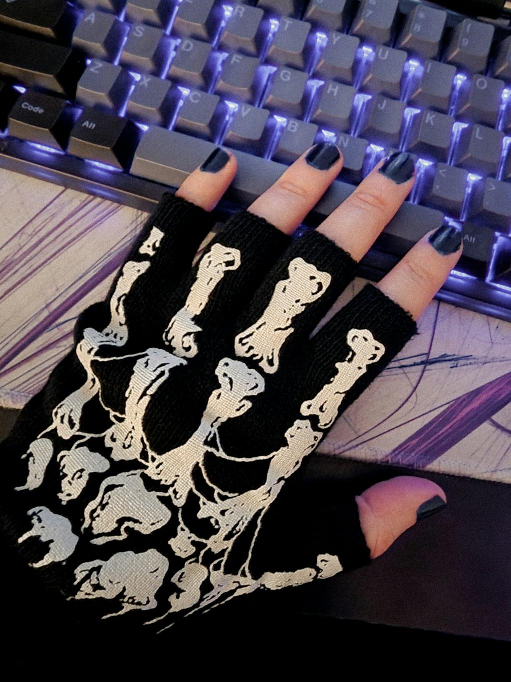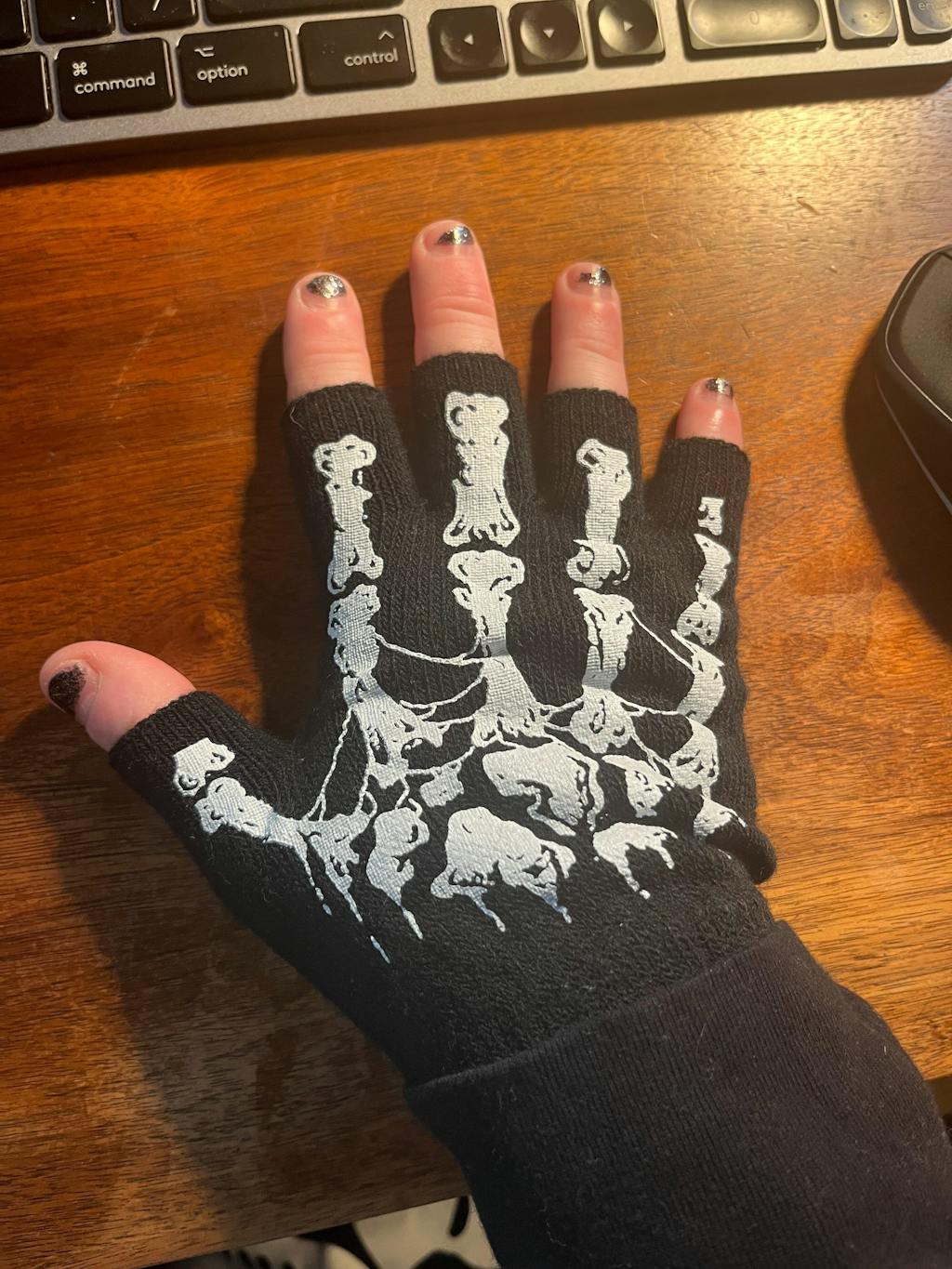 • Fingerless Skeleton Gloves.