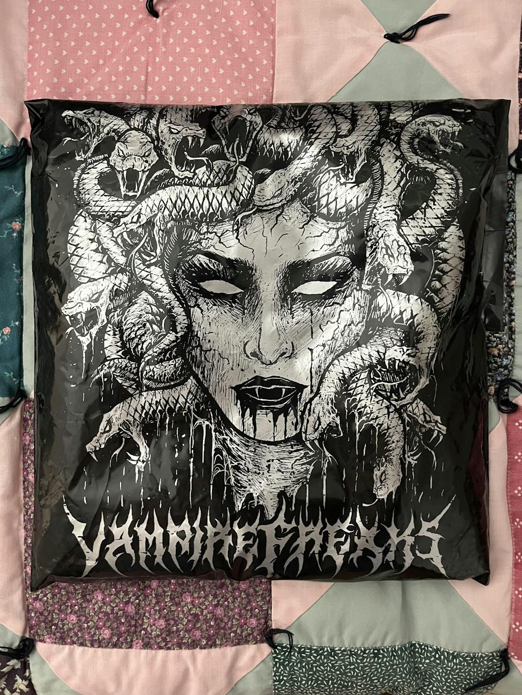 Products listed on our site are currently in stock. Most orders take 1-3 business days for packing and processing at the VampireFreaks warehouse. You can also upgrade to 'priority processing' during checkout to get your order shipped out within 1 business day. Delivery drivers pick up our orders every business day. Please allow extra processing time around holidays.