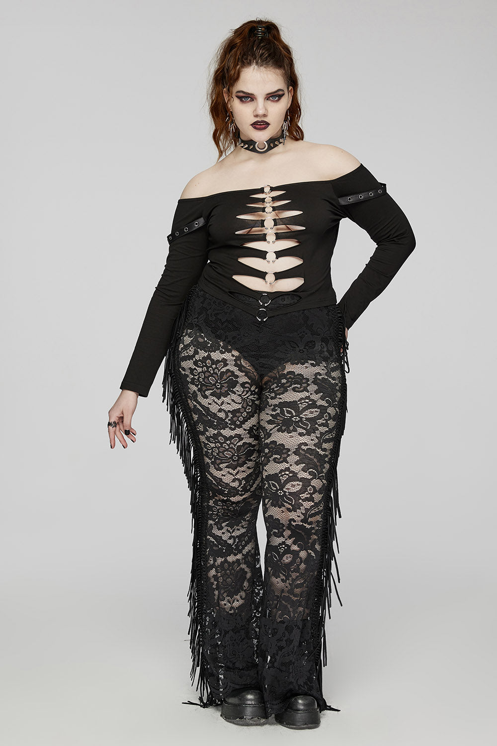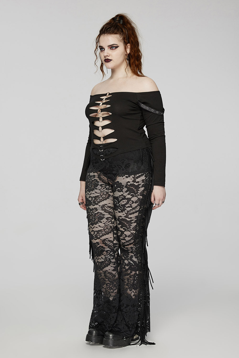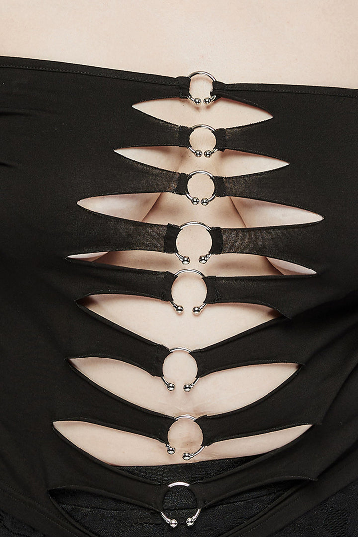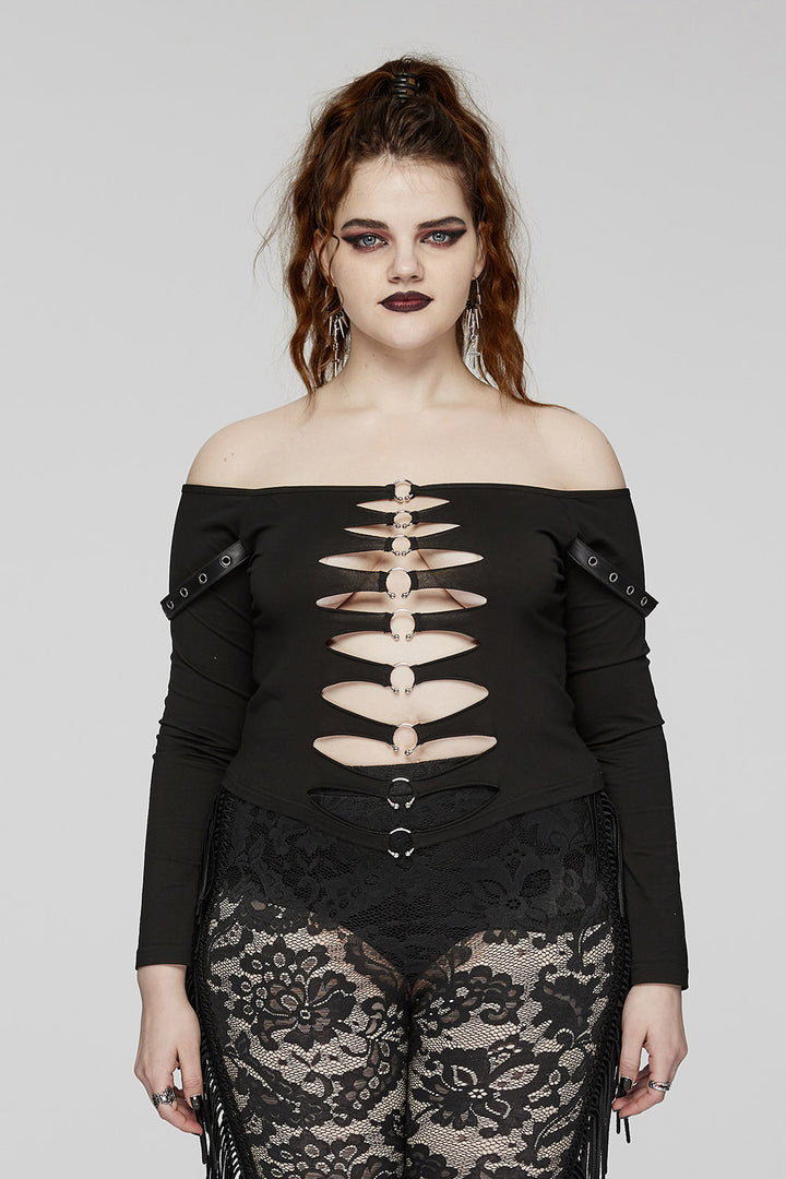 Top con perforaciones y estilo punk desgarrado [talla grande]