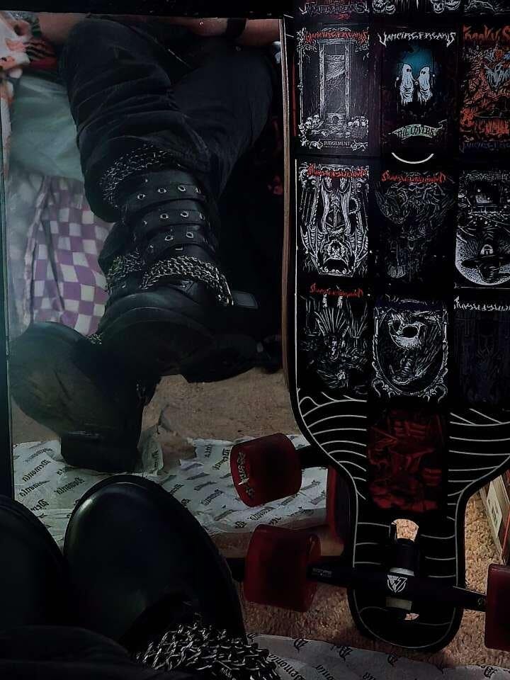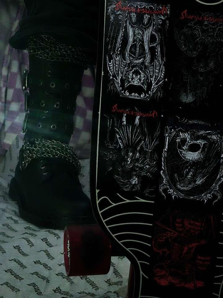 Resurge de las cenizas con estas inquietantes botas de combate. Lidera las legiones con el arsenal de herrajes cromados: 20 ojales de metal negro, puños americanos y detalles de cadenas plateadas. La noche es tuya con este llamativo diseño hasta la rodilla, rematado con una hebilla triple... ajustable para un ajuste punk perfecto.