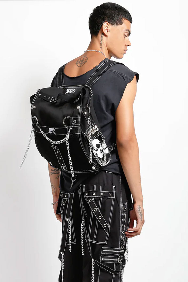 ok first let me say I love this backpack, but there are a couple of drawbacks. The material is the same as what they use to make there pants and that's great. Although it really like to pick up lint, pet hair and the like. On mine I added patches cause their is plent of room on the flap....Yeah. Several of the chains I took off. Just because they got in the way of usage. Which is pretty easy cause they just attached with velcro. I do wish they would of included a crossboy strap cause this backpack can easily become a messenger bag. Son im just gonna find a strap somewhere. Should be pretty easy to find.