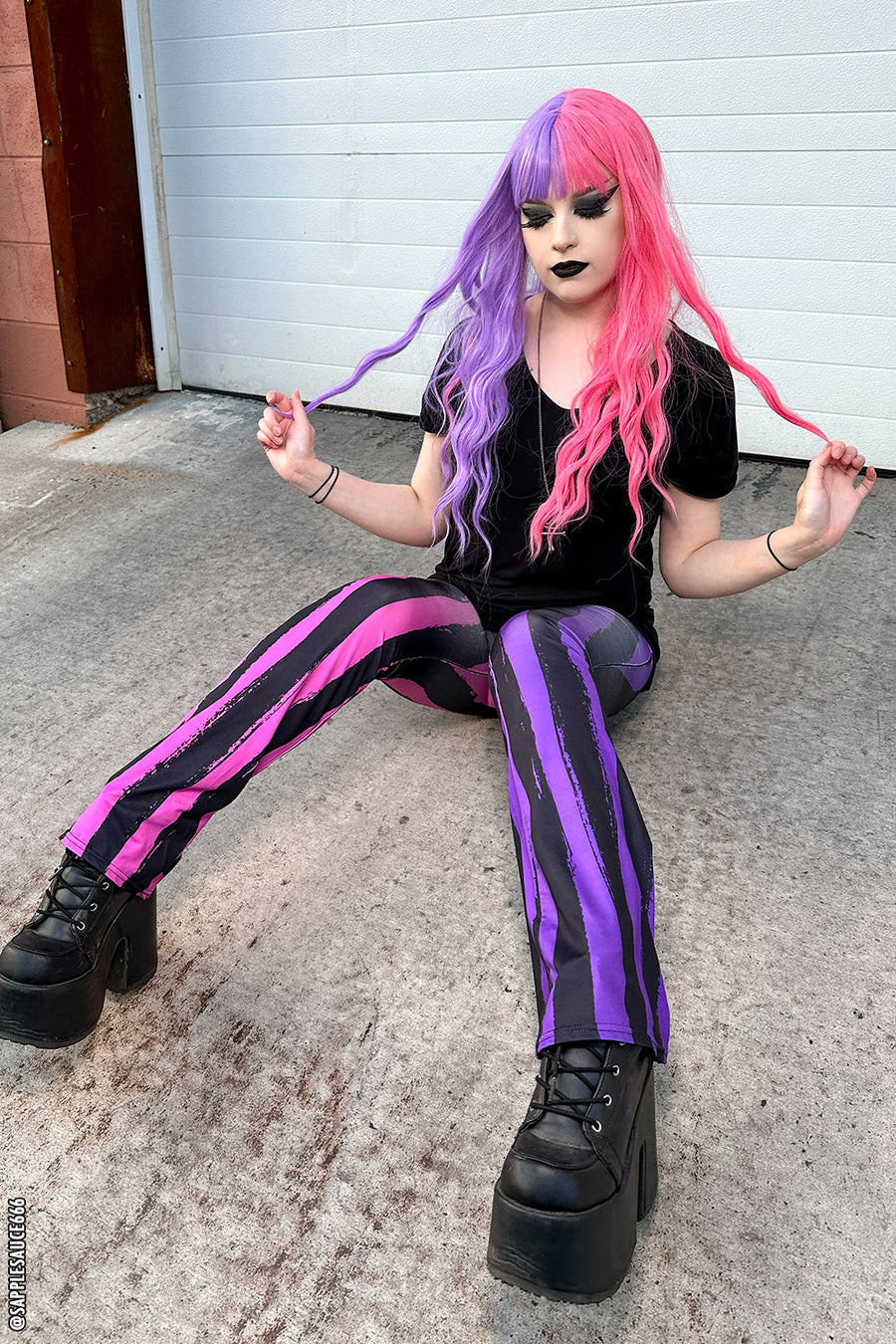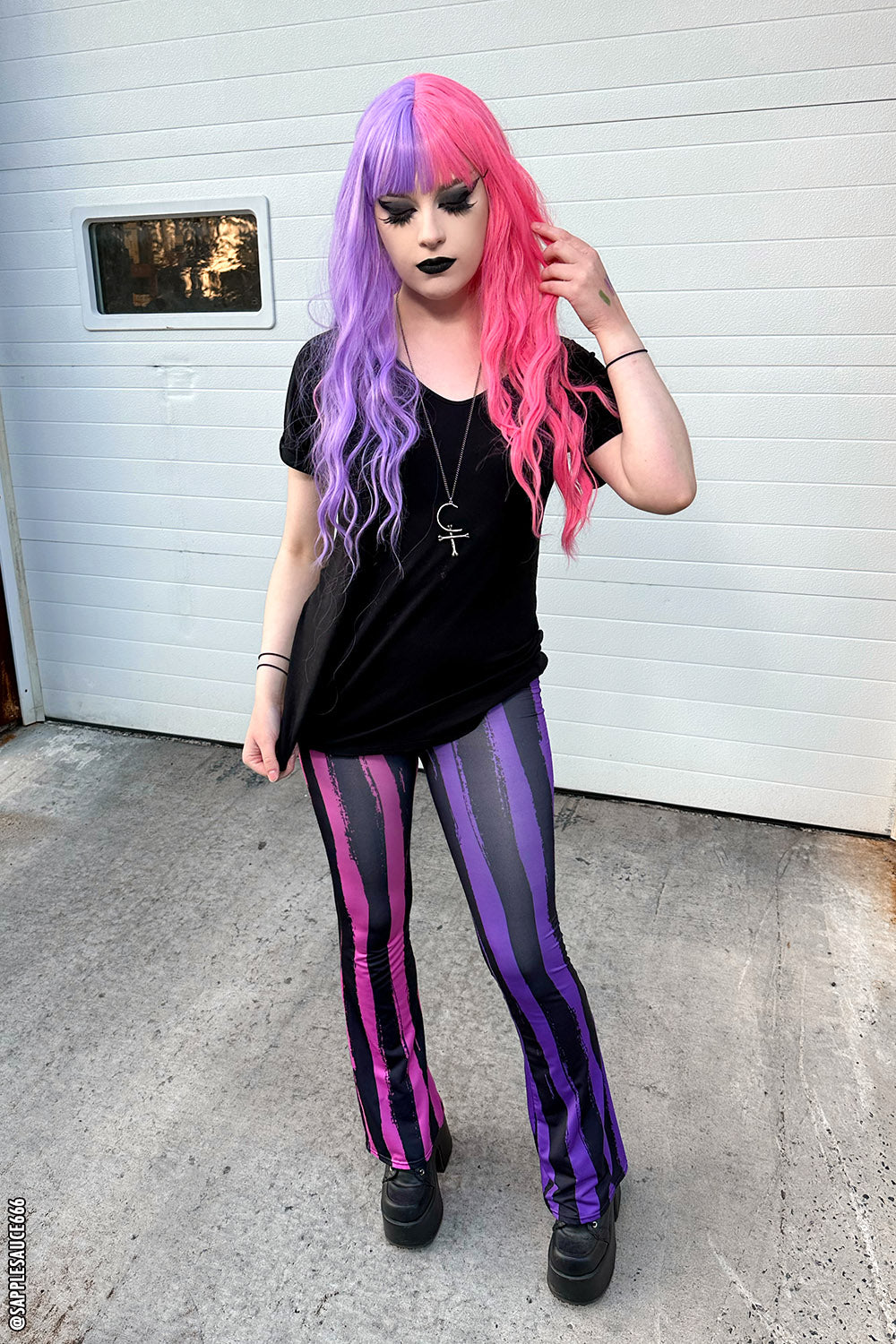 Sweet Spooks Pastel Goth Striped Flares [PINK/PURPLE]