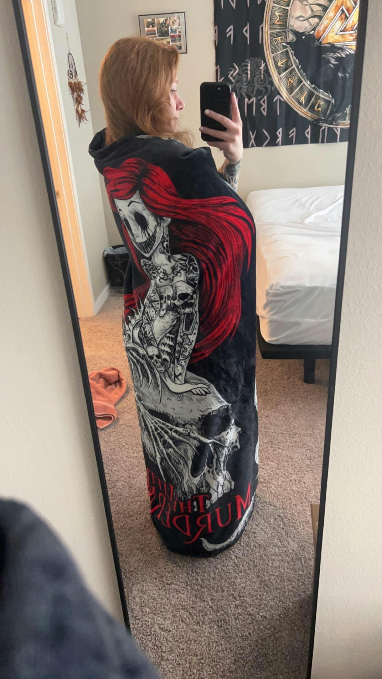 Under the sea, the Little Mermaid slaughters sailors and skewers them on her skeletal tail.