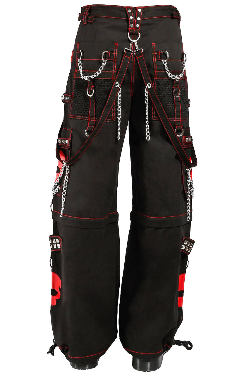 Bring death wherever you go in these badass bondage pants. Summon scares with the blood-red skulls—carry your evil essentials in the deep pockets. Complete with pyramid studs, detachable chains, bondage straps, and contrast stitching. Finished with removable bottoms so you can transform these pants into shorts when the days get hella hot.